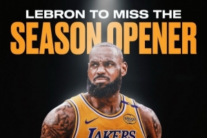 詹姆斯生涯首次缺席常规赛揭幕战 此前他已经连续出战22次!