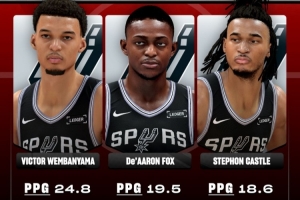 2K模拟数据:文班24.8分11.8板3封盖 福克斯19.5分 卡斯尔18.6分