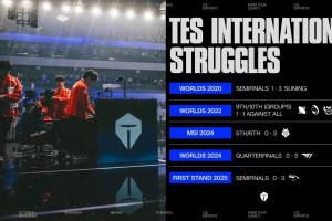 体育资讯10月15日讯 LOL英文流列出TES国际赛惨淡成绩,并配文“他们能否打破诅咒?”