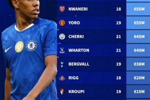 德转盘点本赛季英超值得关注的U21球员:埃斯特旺、恩瓦内里在列