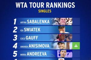 美网夺冠的萨巴伦卡稳居世界第一,斯瓦泰克和高芙分列二三,阿尼西莫娃上升5位至第4,伤缺美网的郑钦文下跌2位至第9。
