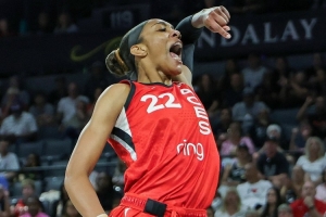此役,王牌球星阿贾-威尔逊出战33分19秒,17投9中(三分3中3)、罚球2中2,轰下23分19篮板4助攻2抢断4盖帽的夸张数据,正负值高达+33!