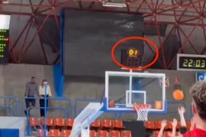 画面中,当时比赛还剩下0.8秒,余嘉豪所在球队落后对手一分,他接应队友边线传球,转身抛射压哨打进,却被裁判吹掉。