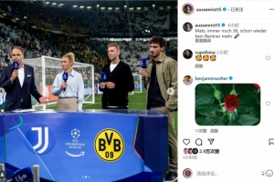 曾效力多特的德国足坛名宿胡梅尔斯参与了这场比赛的现场评述工作,退役不久的他在社交媒体上晒出照片,配文:“马茨(胡梅尔斯),依然36岁,不再是退休人员了。”